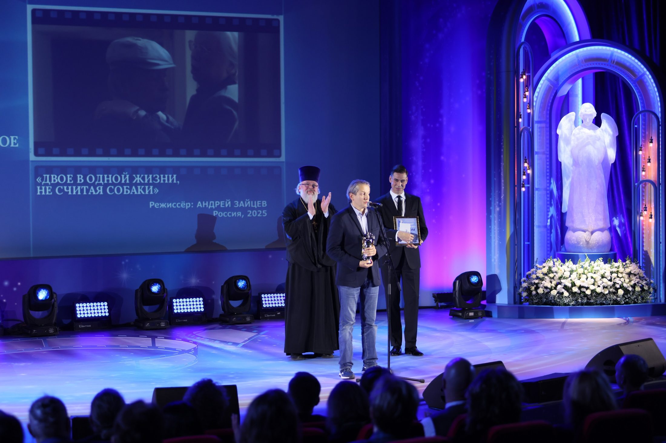 После небольшого перерыва участники церемонии посмотрели фильм, ставший победителем кинофестиваля – «Двое в одной жизни, не считая собаки» (Россия, 2025) режиссера Андрея Зайцева. Это уникальная картина, в которой, по словам Дмитрия Дюжева, ни слова не сказано о Боге, но все в фильме – о Нем. Потому что это история любви, которую главные герои пронесли через всю жизнь и заберут в Вечность.