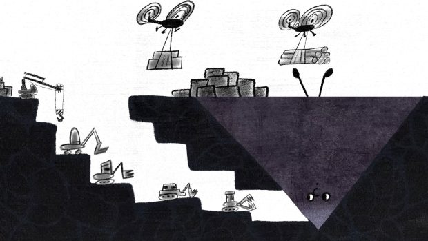 Большая гора жила спокойно, но однажды к ней пришли люди…